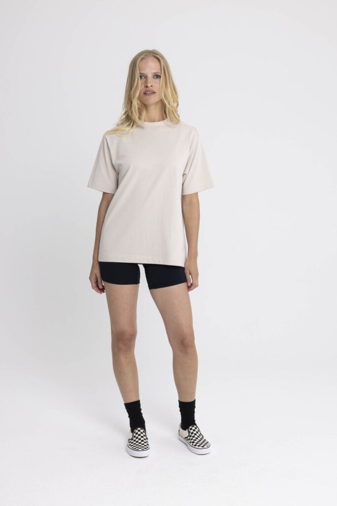 An ultra-heavy weight unisex tee with an oversized fit, dropped shoulders and a slightly cropped length fora modern streetwear edge. Crafted with intention from our signature organic and recycled cotton – thisone defines elevated urban style.